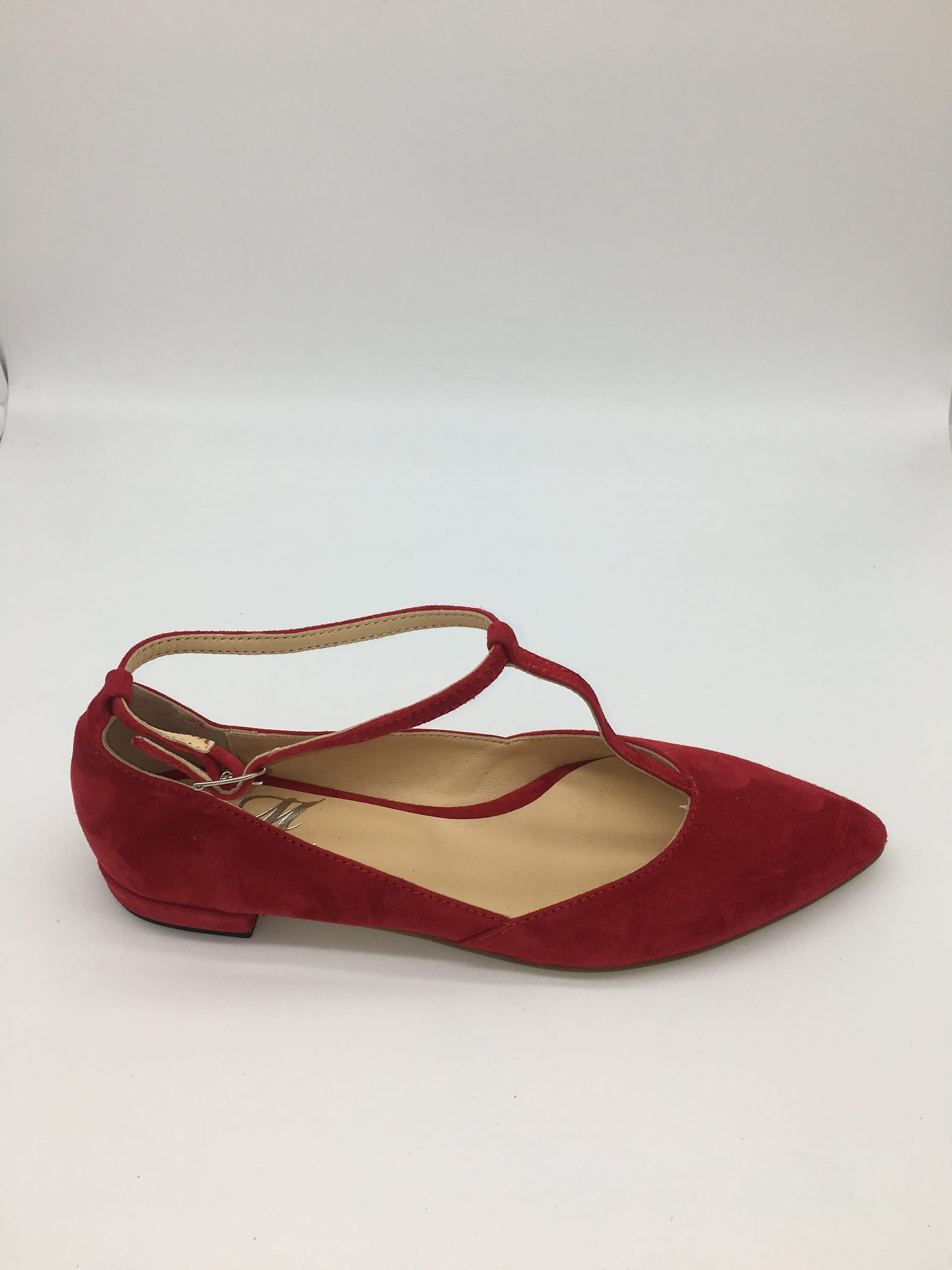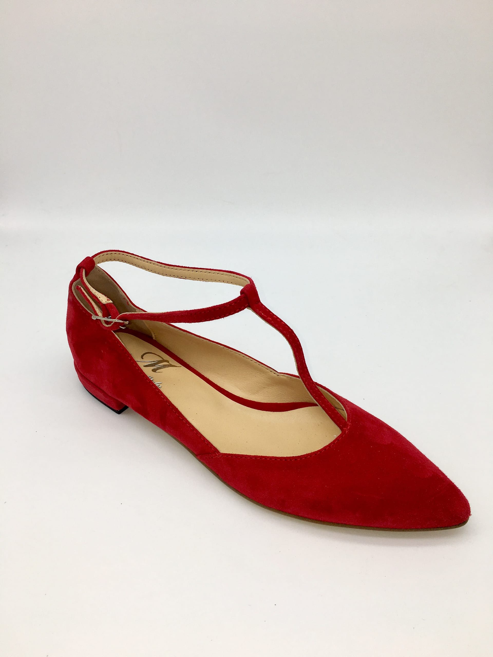 Ballerina a punta con cinturino alla caviglia in camoscio rosso