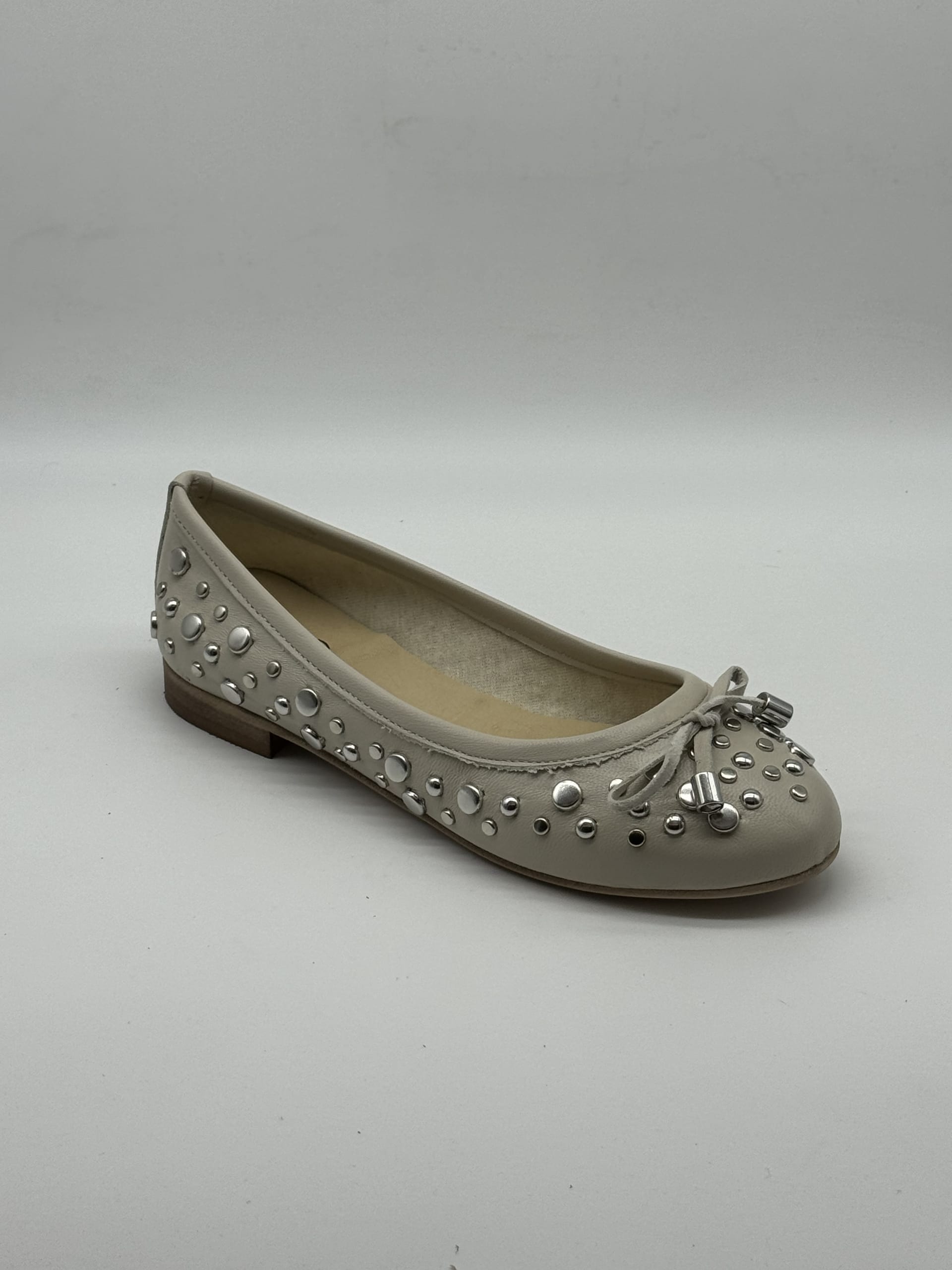 Ballerina tonda in vitello tortora con borchie