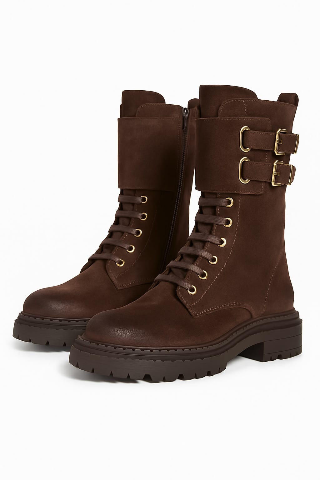 Anfibio camoscio t.moro doppia fibbia  suola gomma