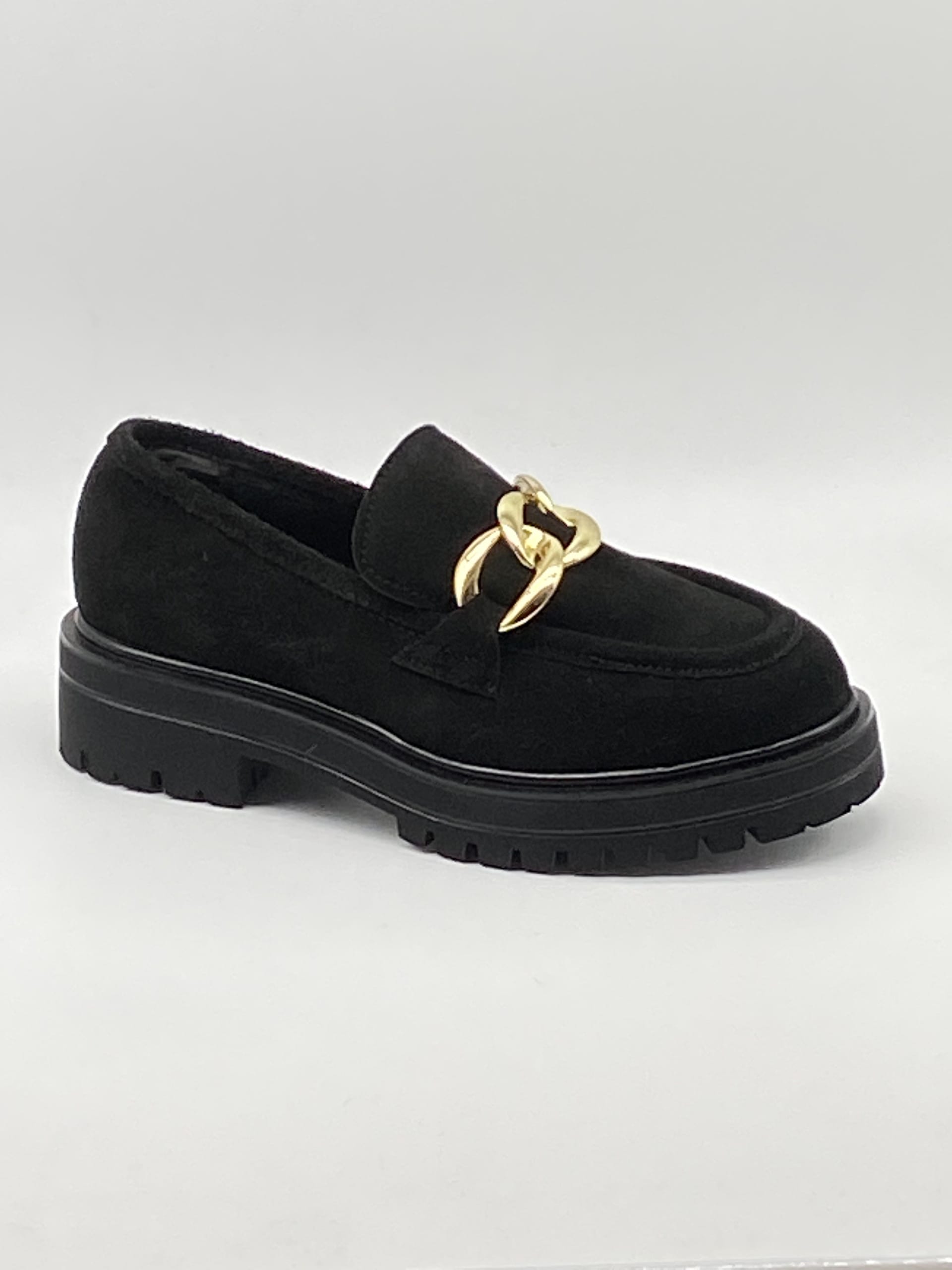 Mocassino con morsetto in camoscio nero, fodera e sottopiede in montone