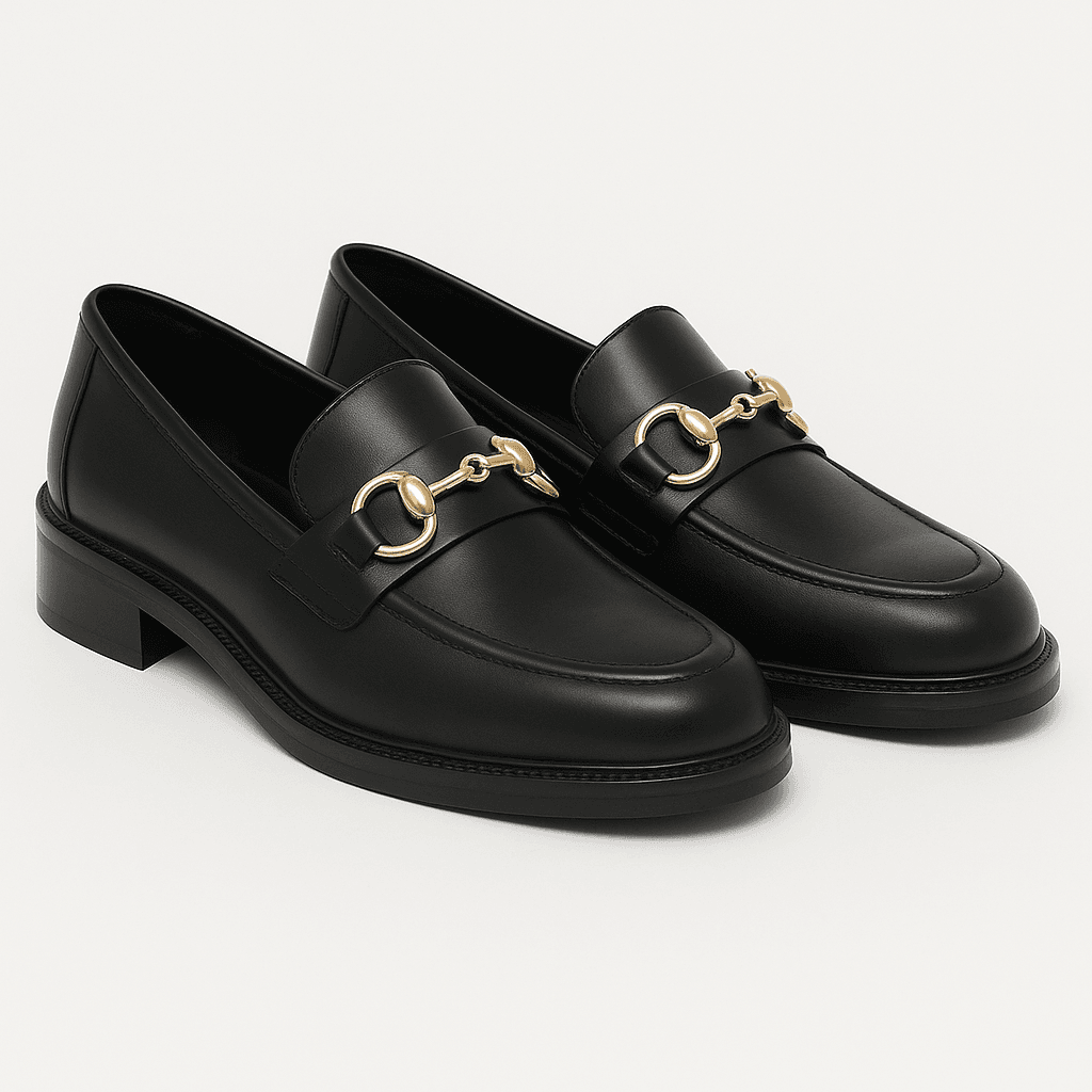 Mocassino in pelle di vitello nera con morsetto