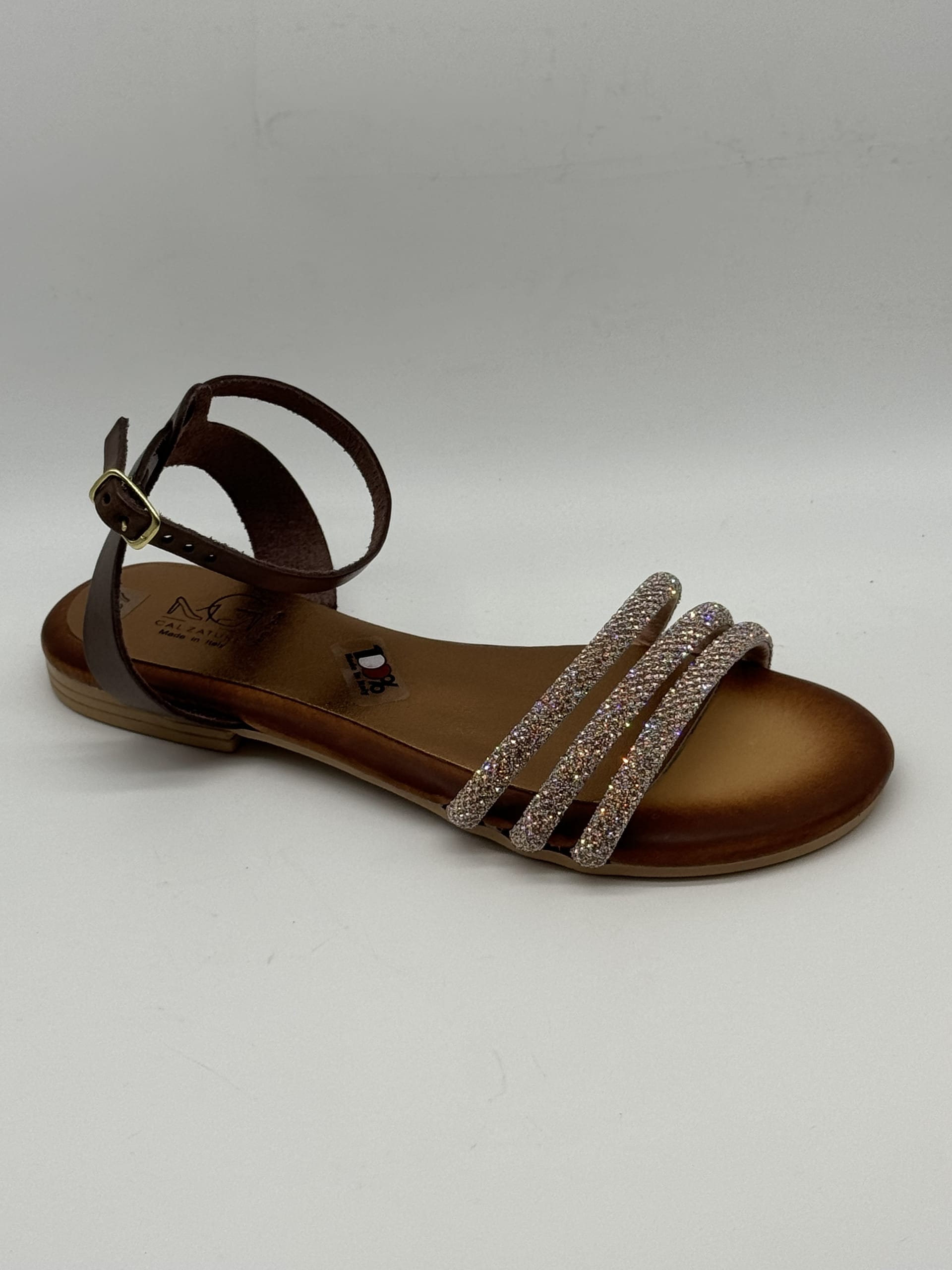 Sandalo con listini in lurex col.rame